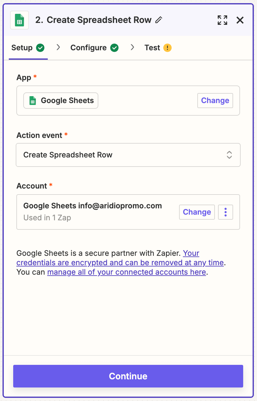 ¡Perfecto! Ya tienes los datos en Zapier, ahora es hora de almacenarlos en algún lugar que puedas revisar fácilmente. ¿Qué tal una hoja de cálculo en Google Sheets?